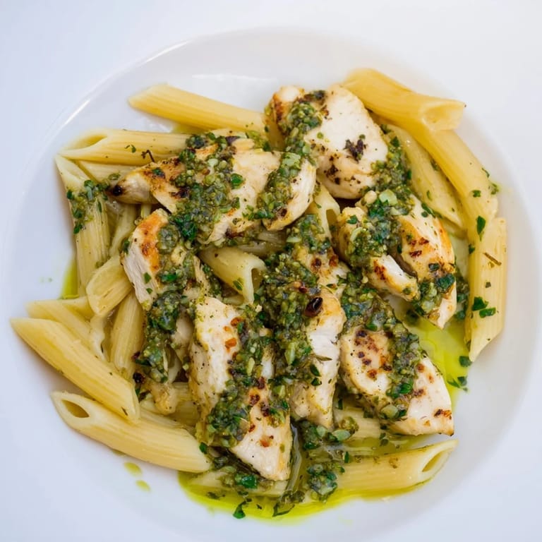 Pin It Last summer, my neighbor Ana brought over a jar of her grandmother's chimichurri after I mentioned running out of dinner ideas. She told me to just try it on everything and see what happened. That same evening, I had chicken defrosting and a box of penne in the pantry, so I threw them together on a whim.