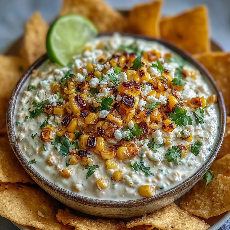 Pin It This dip balances smokiness from the paprika and the freshness from lime and cilantro, giving every bite a lively and satisfying taste. The charred corn adds a subtle sweetness and a slight crunch that complements the creamy base. Paired with crunchy tortilla chips and extra lime wedges, this dip captures the essence of Mexican street food in a bowl.