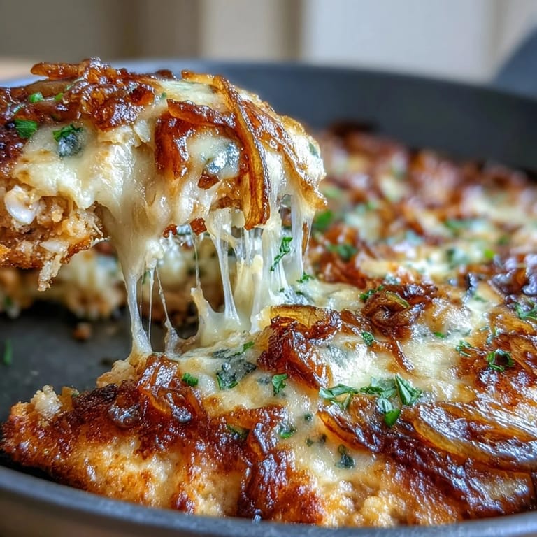 Pin It French Onion Chicken Bake with Melted Gruyere is a comforting baked chicken dish inspired by classic French onion soup. This recipe features tender chicken breasts smothered in caramelized onions and topped with bubbling Gruyere cheese, creating a rich and savory meal that is perfect for any occasion. With a preparation time of just 15 minutes, this French-American main dish brings sophisticated bistro flavors right to your home kitchen.