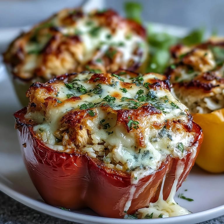 Pin It My neighbor knocked on the door one Tuesday evening with four perfect bell peppers from her garden, asking if I could do something special with them for her dinner party. I stood there holding those glossy, jewel-toned peppers and thought about all the ways to stuff them, but then it hit me—creamy garlic chicken with Parmesan, baked until the cheese turned golden and crispy on top. That night, watching her face light up as she took the first bite, I realized this dish had become my go-to move for making people feel genuinely cared for.