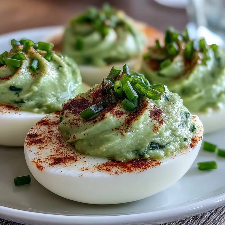 Pin It The beauty of this recipe lies in its simplicity. With just a handful of wholesome ingredients and minimal prep time, you can create an appetizer that looks professionally crafted. The avocado not only adds stunning color but also contributes heart-healthy fats and a silky texture that makes the filling irresistibly creamy. A touch of lemon juice keeps the filling bright and fresh while preventing oxidation, ensuring your deviled eggs stay gorgeous from prep to presentation.
