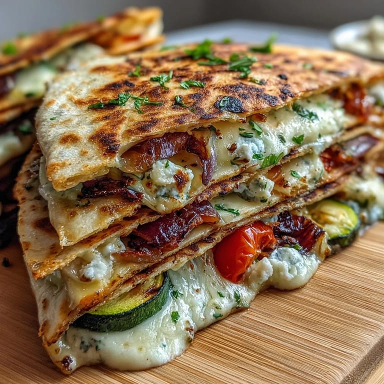 Pin It The summer my neighbor invited me over for her experimental taco night, I laughed when she started grilling zucchini and bell peppers instead of seasoned meat. Then she slid a quesadilla onto my plate, and I took one bite of that smoky, cheesy Mediterranean fusion and went completely silent. Now I make them at least twice a month, sometimes just for myself when I want something that feels indulgent but still loaded with vegetables.