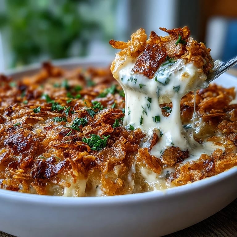 I've made this with smoked turkey when ham felt too predictable, and I've also used bacon pieces for a smokier bent that completely changed the mood of the dish. For friends eating vegetarian, swapping cream of mushroom soup for the chicken version and nixing the ham entirely keeps the integrity intact. Even diced jalapeños stirred into the filling add unexpected heat that surprised everyone in a good way.