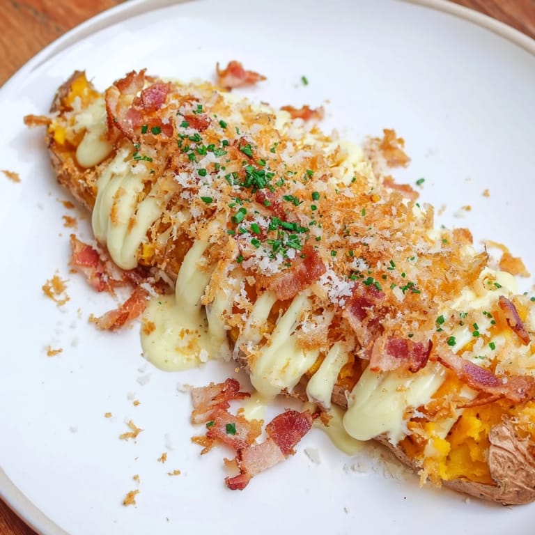 Pin It I was standing at a friend's kitchen island when she pulled a tray of these from the oven, and the smell alone stopped mid-sentence conversation. Sweet potato, sharp cheddar, smoky bacon—it hit all at once. She handed me one still too hot to hold properly, and I didn't care. That first bite, creamy and crispy at the same time, made me forget I'd only come over to drop off a book.