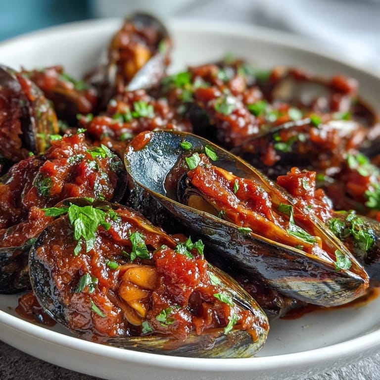 Pin It The smell hit me first, sharp and briny, cutting through the steam rising from the pot. I had bought too many mussels on a whim at the farmers market, lured by their glistening shells and the fishmongers promise that theyd be sweet. Standing in my kitchen that evening, I tossed smoked paprika into simmering tomatoes and watched the sauce turn a deep, earthy red. The mussels opened like little gifts, one by one, releasing their ocean-sweet liquor into the broth. I sopped up every drop with bread, alone at my counter, and realized Id stumbled onto something I'd make again and again.