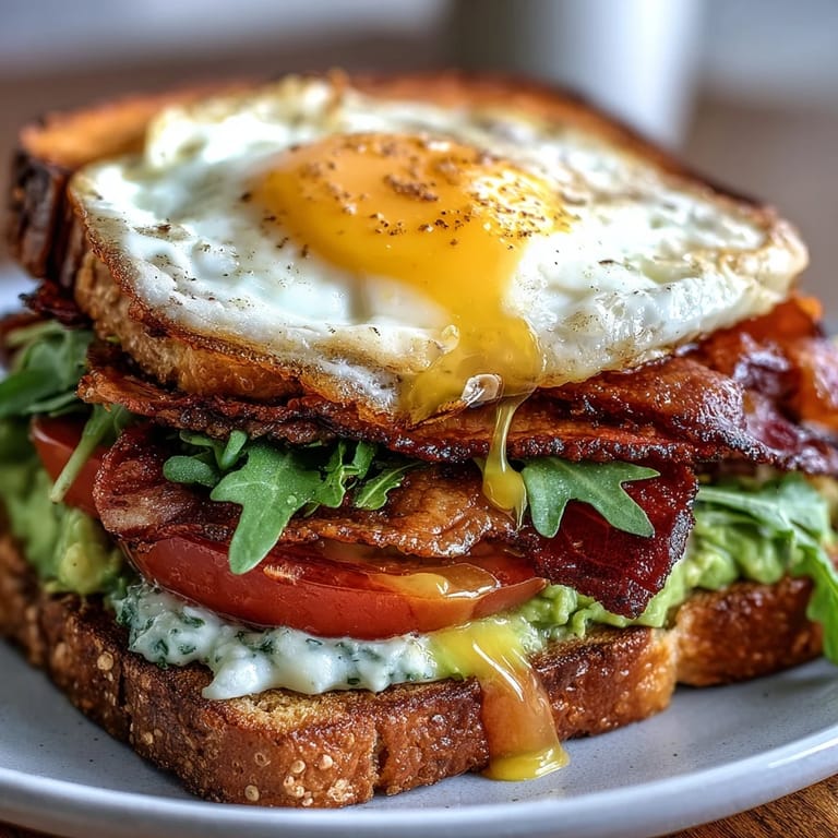 Pin It One Saturday morning, my partner stood at the stove looking frustrated with a plate of scrambled eggs and plain toast, and I realized breakfast didn't have to be boring. I started pulling ingredients from the fridge—crispy bacon, creamy avocado, ripe tomatoes—and stacking them on sourdough like I was building something that actually mattered. That first bite, with the yolk breaking across everything, changed how we do breakfast. Now this stack is our weekend ritual, the kind of meal that makes you want to slow down and actually taste what you're eating.