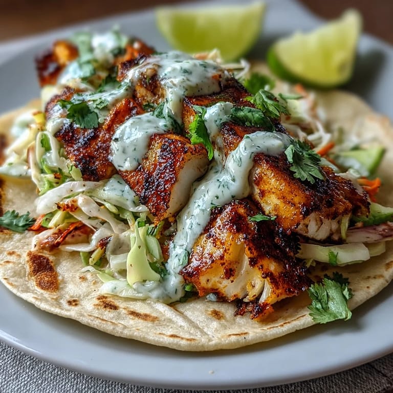 Pin It My neighbor showed up one evening with a bag of fresh lime and some gorgeous white fish from the market, asking if I wanted to make something quick for dinner. I'd never really thought about fish tacos before that moment, but twenty minutes later we were standing in my kitchen watching the spices bloom in hot oil, and I understood why people get obsessed with them. There's something about the way the chili and cumin hit the pan, how the fish breaks apart into golden flakes, and how a simple pile of slaw and creamy sauce transforms everything into something that tastes like a beachside meal you'd travel for. This has become my go-to when I want to impress people without actually working that hard.