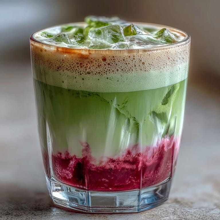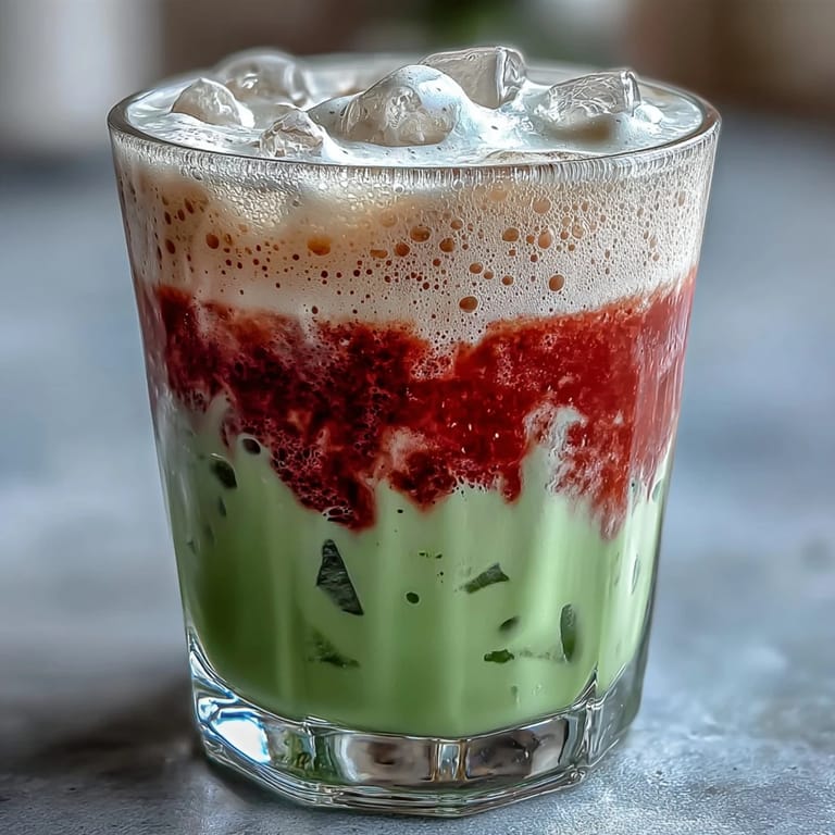 Pin It This Strawberry Matcha Latte brings together two beloved ingredients from different culinary traditions—Japanese matcha and fresh, ripe strawberries—in a harmonious fusion drink that's both refreshing and energizing. The homemade strawberry puree adds natural sweetness and a gorgeous base layer, while the whisked matcha provides antioxidants and a smooth, grassy flavor. Topped with frothy barista-style oat milk, each sip offers a creamy, indulgent experience that rivals any specialty coffee shop creation. The beauty of this recipe lies in its simplicity and the joy of watching the colorful layers come together in your glass.