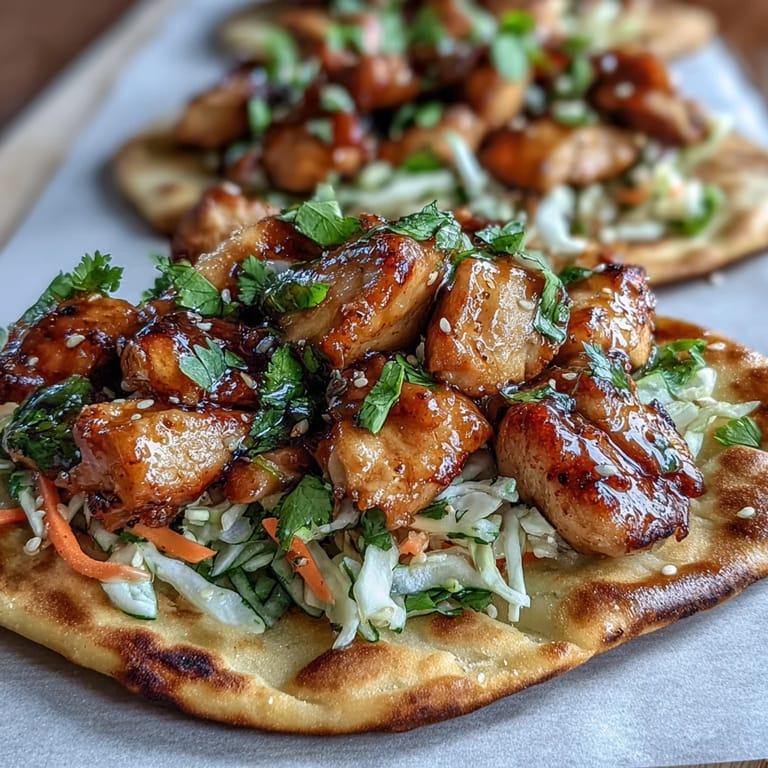 Pin It My sister called me from her new apartment in Austin asking if I could teach her something easy for a dinner date, and suddenly I was explaining how honey-garlic chicken transforms when you tuck it into warm garlic naan instead of a tortilla. She was skeptical—I could hear it in her voice—but when she texted me photos of the tacos with that glossy golden chicken and bright slaw, she added a string of fire emojis. That's when I knew this fusion thing actually worked.