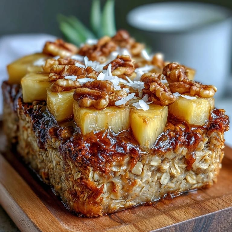 Pin It There's something about waking up to the smell of coconut and caramelizing pineapple that makes even the groggiest morning feel like a small vacation. I stumbled onto this recipe during a particularly uninspired January when my breakfast rotation had become depressingly predictable—the same oatmeal bowl, day after day. Then a friend brought over fresh pineapple from a farmers market, and instead of eating it raw, I wondered what would happen if I baked it into something warm and comforting. That curiosity turned into this tropical oatmeal bake, and now it's become my favorite way to start the week when I need a little brightness.